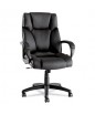 Ultra-soft cushions, side bolsters and lumbar bolsters for maximum support. Plush, thickly-padded headrest and arm rests. Soft touch leather upholstery for style and comfort. Waterfall seat edge reduces pressure ponts at the back of the knees for improved circulation. Five-star base with casters for easy mobility. Recommended Applications: Executive & Management; Seat/Back Color: Black.