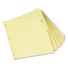 Three-hole punched, buff sheets with blank tab inserts. Single-sided clear Mylar® reinforced binding edge. Tab Style: 5-Tab; Tab Color(s): Multicolor; Index Divider Size: 11 x 8 1/2.