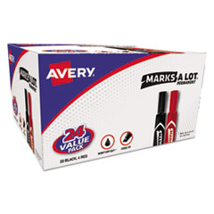 Make a mark that will stand the test of time. Marks virtually any surface and resists rubbing, water and fading. Quick-drying formula minimizes accidental contact with damp ink. Chisel tip allows you to vary the width of your strokes for legible notes on small surfaces and broad strokes on high-visibility signs. Low odor. 24 for the price of 20! Marker Type: Permanent; Assortment: 4 Red;20 Black; Color(s): Assorted.
