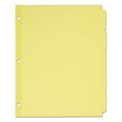 Write directly on the nonlaminated tabs of these economical dividers. Clear plastic reinforcing strip for tear resistance at binder holes. Three-hole punched for use in standard ring binders. Tab Style: 5-Tab; Tab Color(s): Buff; Index Divider Size: 11 x 8 1/2.
